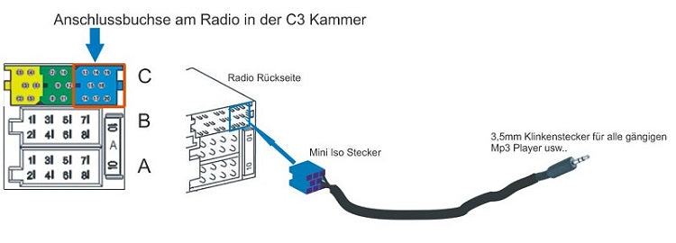 KFZ Auto Radio AUX 12 Pol Quadlock Klinken Stecker 3,5mm passend für Audi VW Seat Skoda