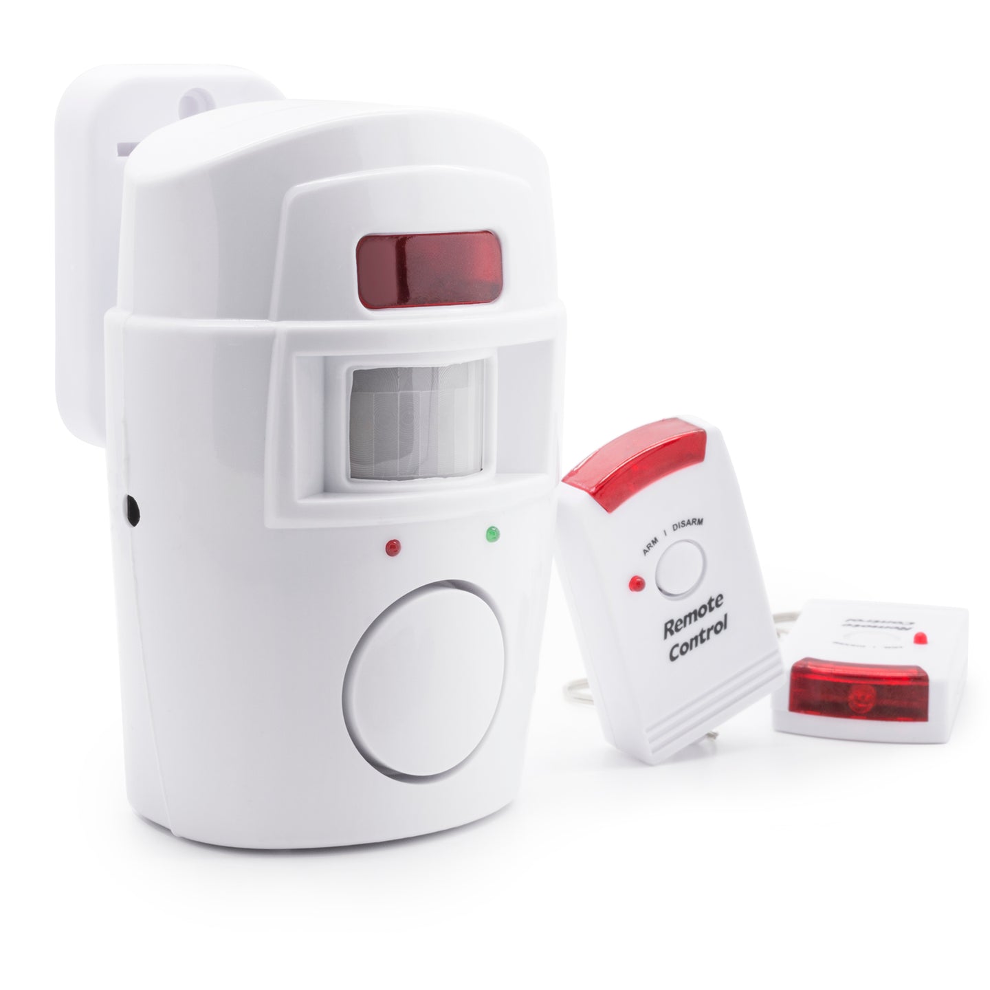 2x Home Security Bewegungsmelder 105 dB4x IR Fernbedienung + Schlüsselring inkl. 6 Knopfzellenbatterien LR 44