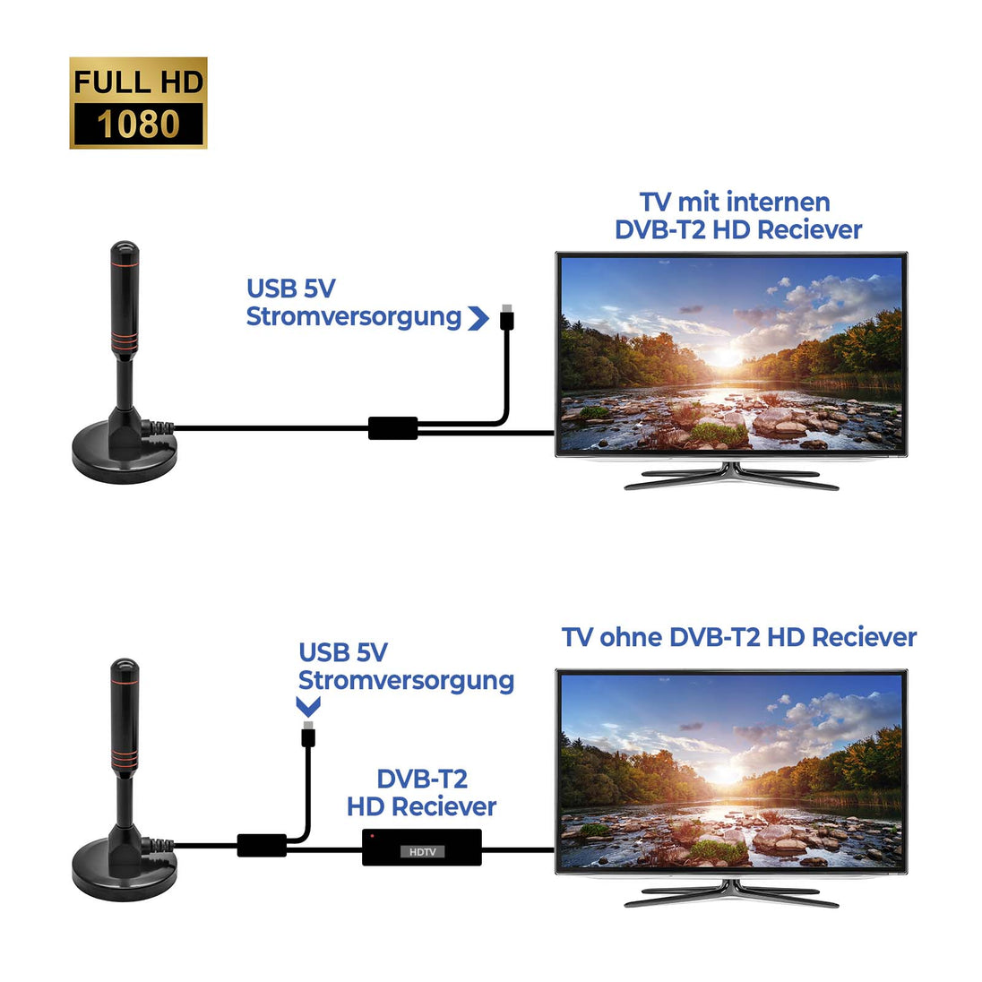 Die leistungsstarke 30dbi DVB-T2 Antenne inklusive Verstärker gewährleistet einen maximalen Empfang sowie eine stabile Signalstärke.