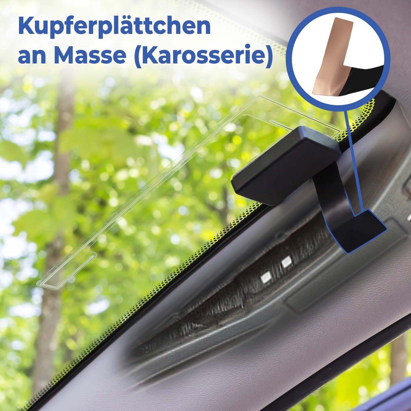 Grundlegend ist es zu Empfehlen Ihre Scheibenantenne an die Innenseite Ihrer Fahrzeugscheibe zu kleben da sie so von Vandalismus und äußeren Wetterbedingungen geschützt ist!