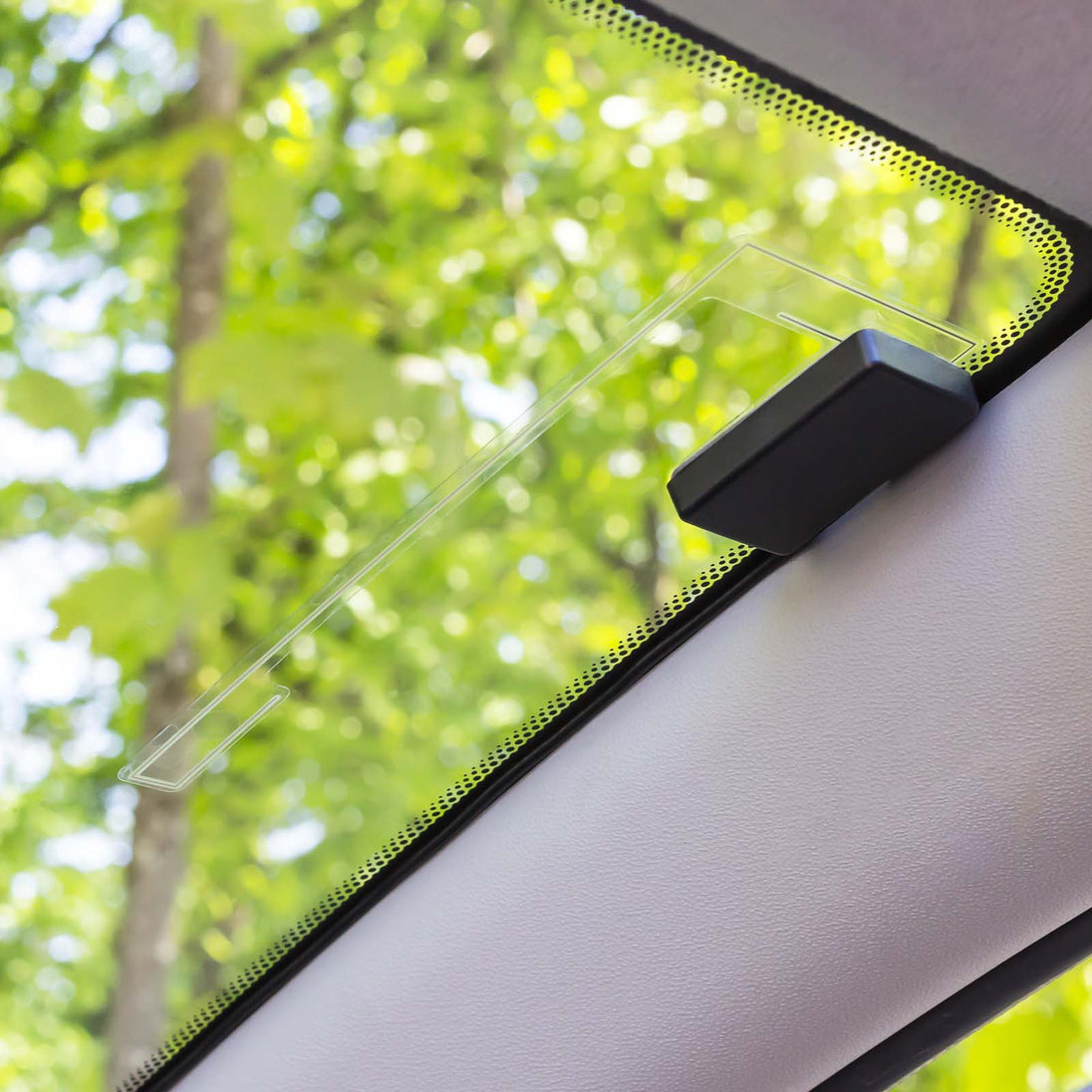 • Den durchsichtigen Folienteil auf die Scheibe kleben