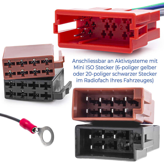 Dieser Adapter ermöglicht Ihnen den Anschluss eines handelsüblichen Autoradios an die vorhandenen Aktivlautsprecher Ihres Fahrzeuges. Es sind keine Fachkenntnisse beim Einbau erforderlich. Adapter wird zwischen Kabelbaum Ihres Fahrzeuges und Ihrem neuen Radio eingesteckt. Das Massekabel mit...Regular price €14,99Regular price €14,99